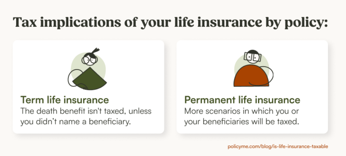 The tax implications of a life insurance policy change depending on which type of life insurance you buy: term or permanent.